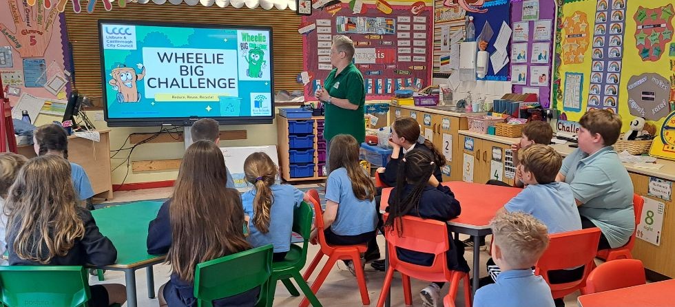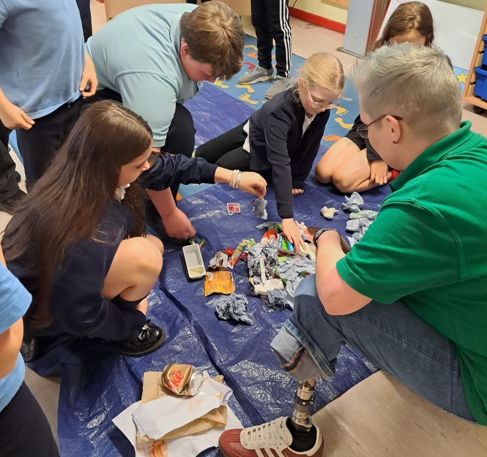 The new Eco Council had some serious waste investigating today with Anna from Keep Northern Ireland Beautiful, for their Wheelie Bin Challenge workshop. Learning about how and where to put correct our waste and why it is vital for our environment. They then got a chance to sort out recyclable waste from non recyclable waste from some of our classroom bins.