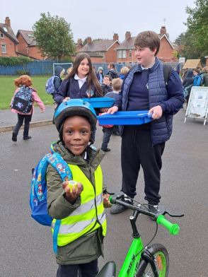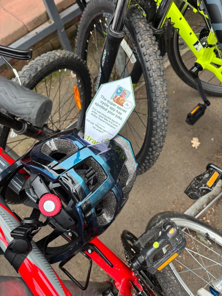 Children were encouraged to ride their bokes to school and pick up some prizes along the way!